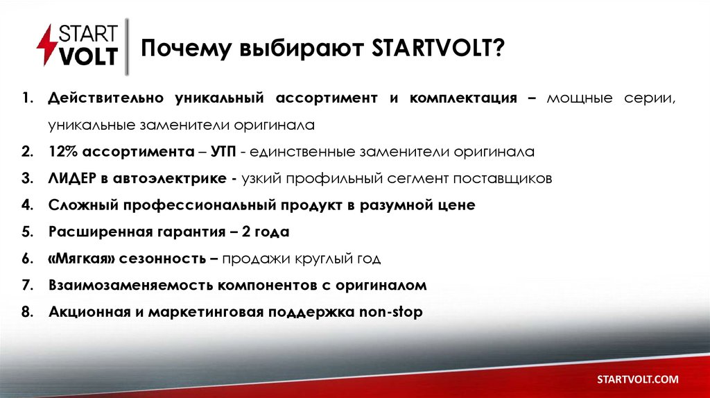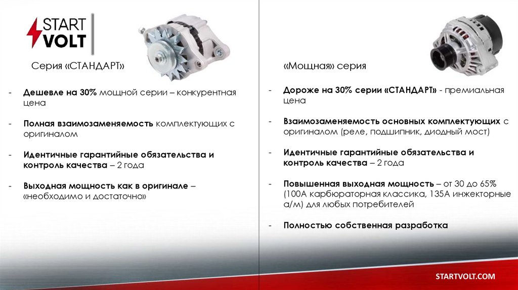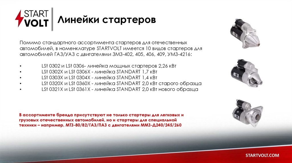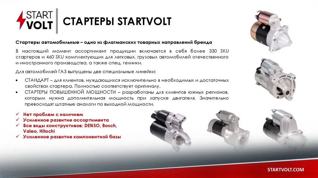 Почему выбирают STARTVOLT?1. Действительно уникальный ассортимент и комплектация – мощные серии,