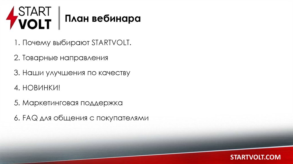 План вебинара1. Почему выбирают STARTVOLT.