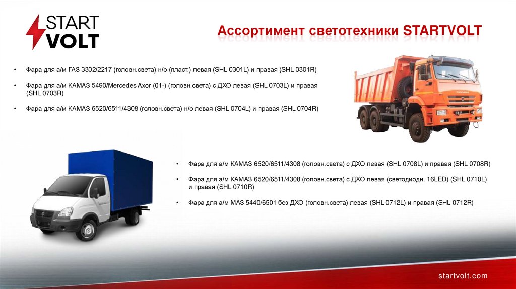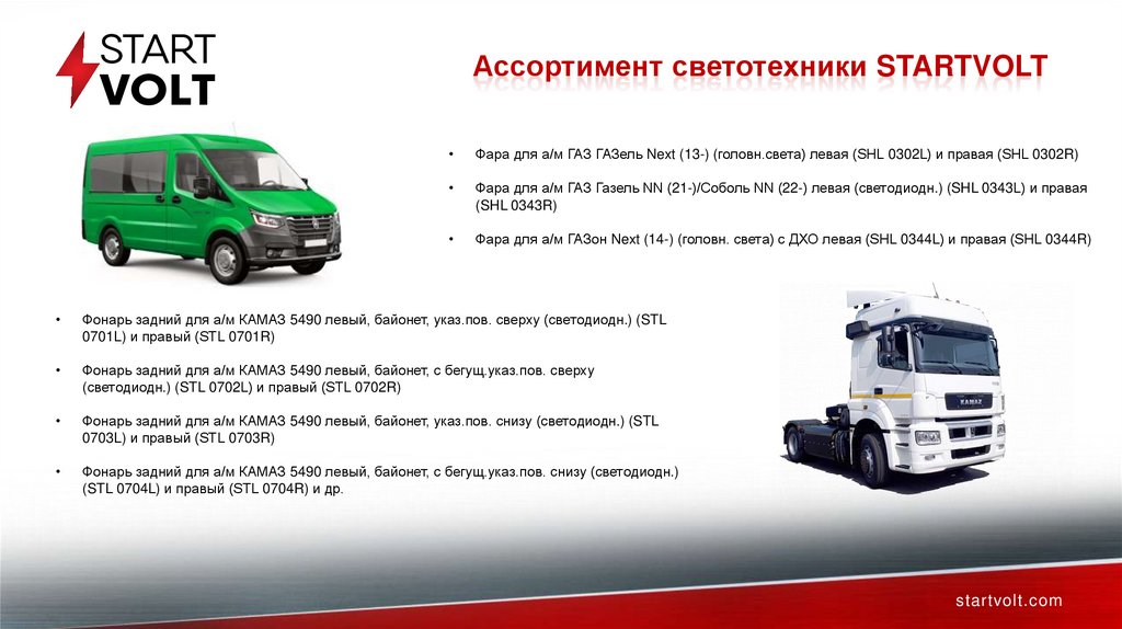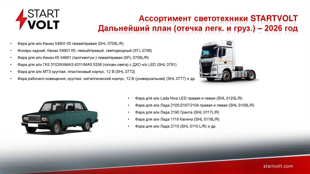 Ассортимент светотехники STARTVOLTДальнейший план (отечка легк. и груз.) – 2026 год