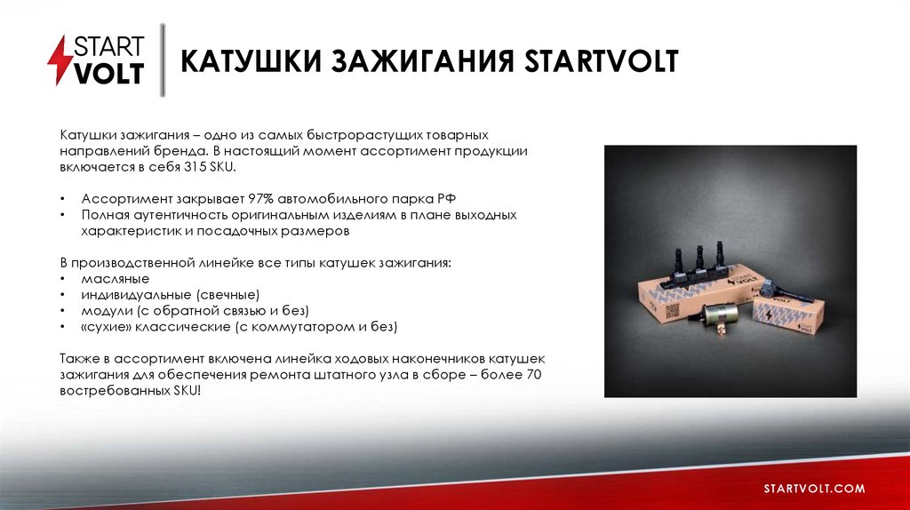 КАТУШКИ ЗАЖИГАНИЯ STARTVOLTКатушки зажигания – одно из самых быстрорастущих товарных