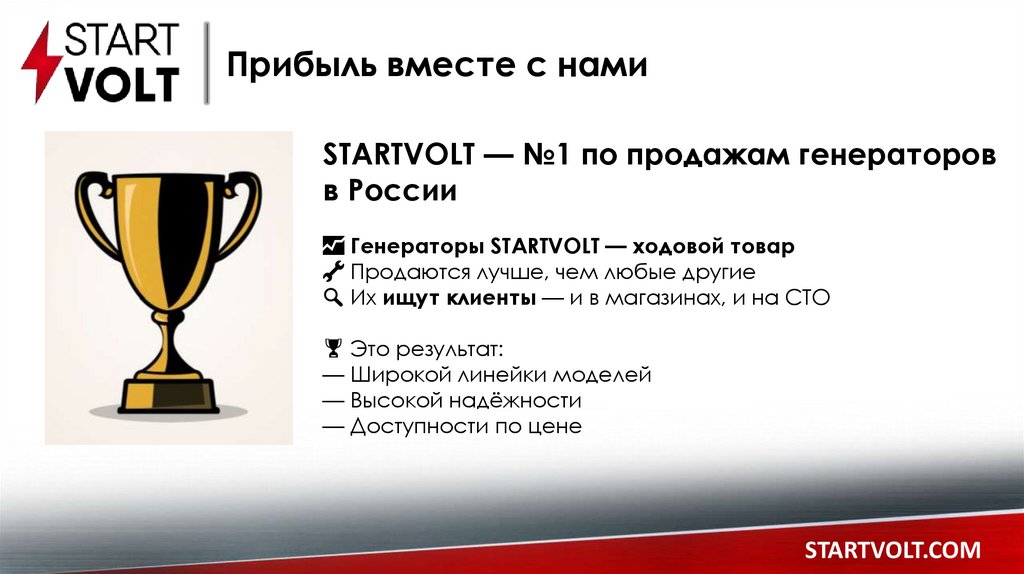 Прибыль вместе с намиSTARTVOLT — №1 по продажам генераторов