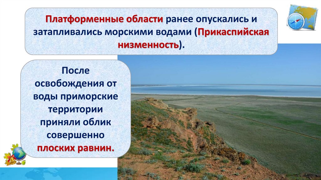 Платформенные области ранее опускались изатапливались морскими водами (Прикаспийская