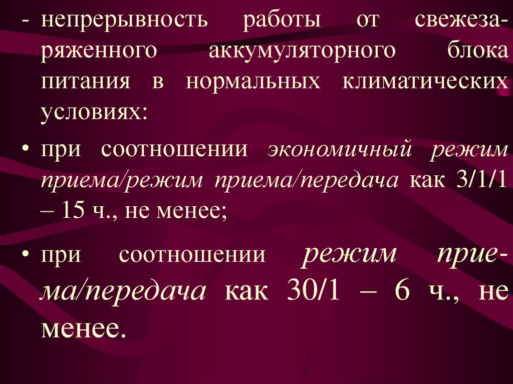 - непрерывность работы от свежезаряженногоаккумуляторного