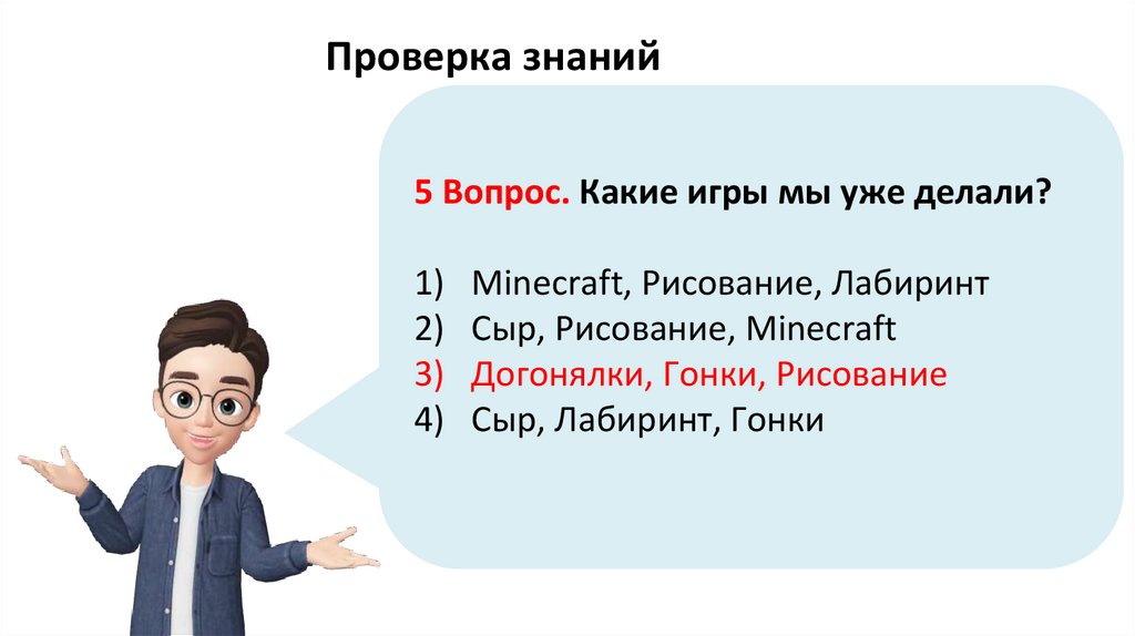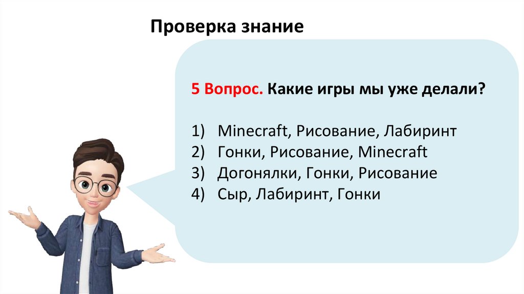 Проверка знаний5 Вопрос. Какие игры мы уже делали?