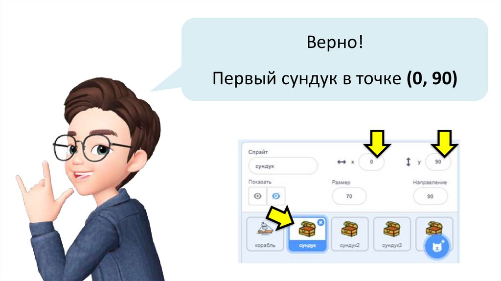 Верно!Первый сундук в точке (0, 90)
