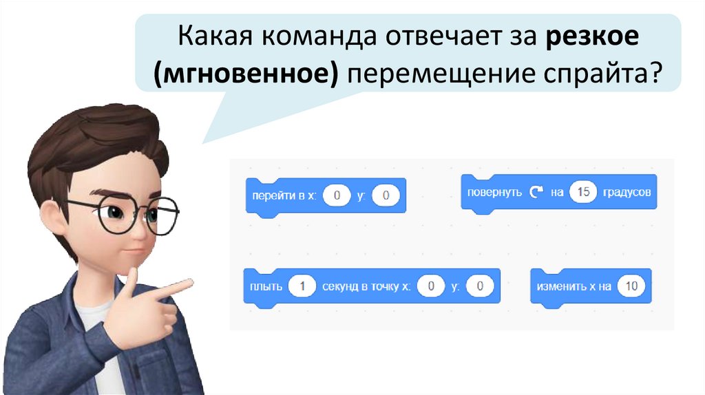Какая команда отвечает за резкое(мгновенное) перемещение спрайта?