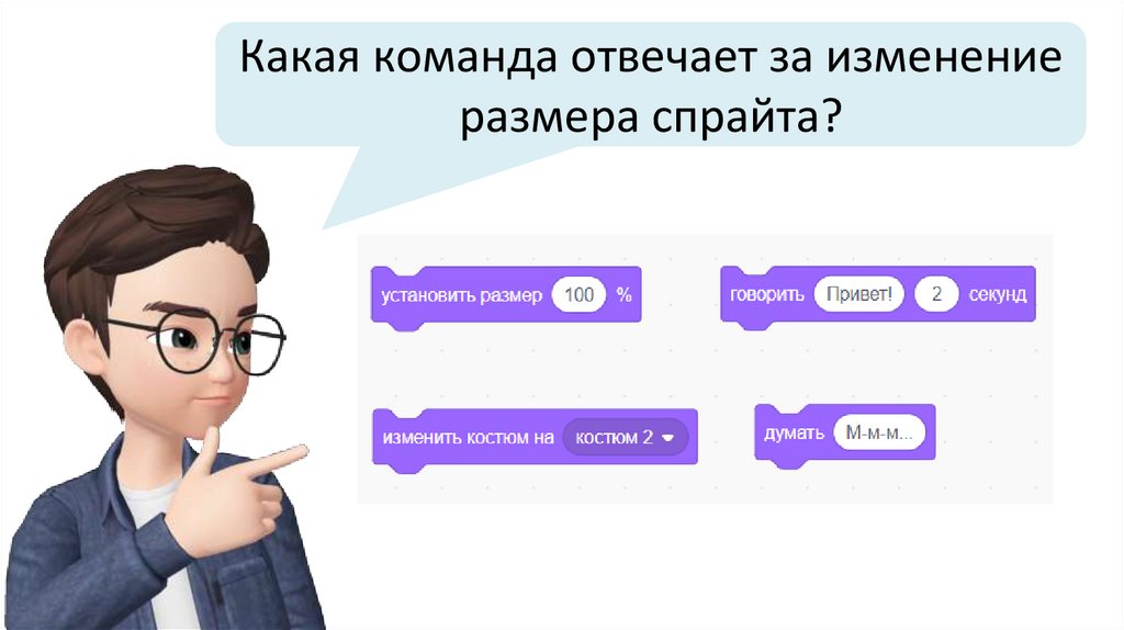 Какая команда отвечает за изменениеразмера спрайта?