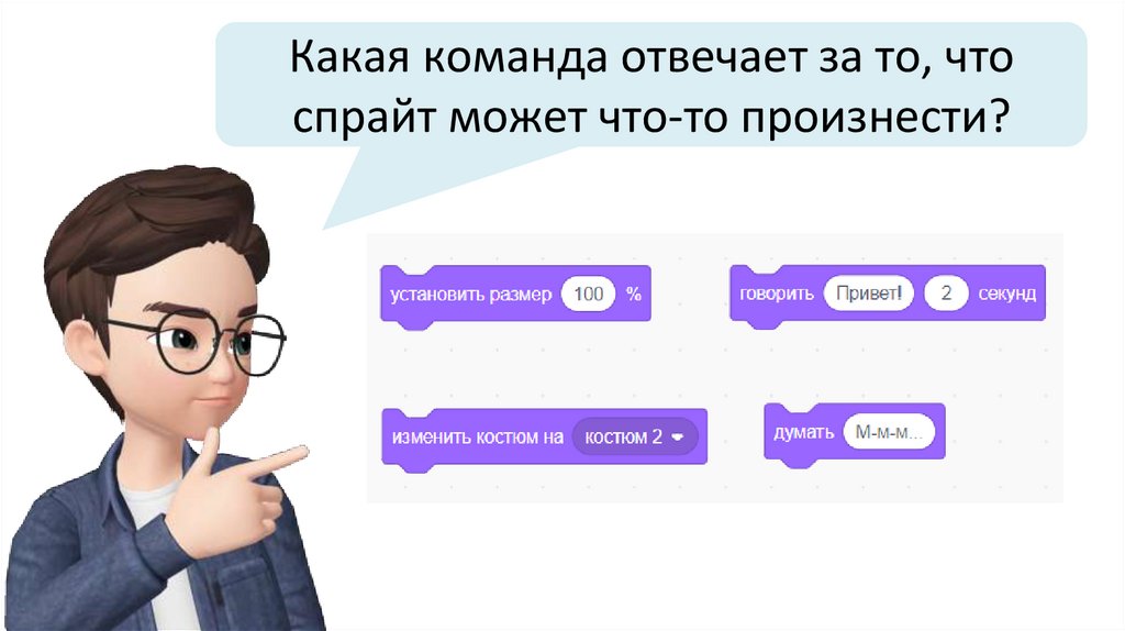 Какая команда отвечает за то, чтоспрайт может что-то произнести?