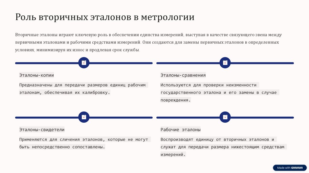 Роль вторичных эталонов в метрологииВторичные эталоны играют ключевую роль в обеспечении единства измерений, выступая в качестве связующего звена между