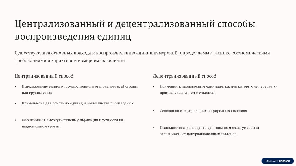 Существуют два основных подхода к воспроизведению единиц измерений, определяемые технико-экономическими