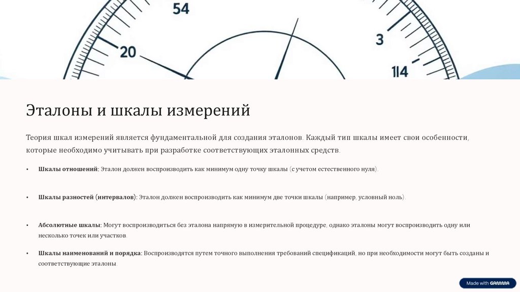 Эталоны и шкалы измеренийТеория шкал измерений является фундаментальной для создания эталонов. Каждый тип шкалы имеет свои особенности,