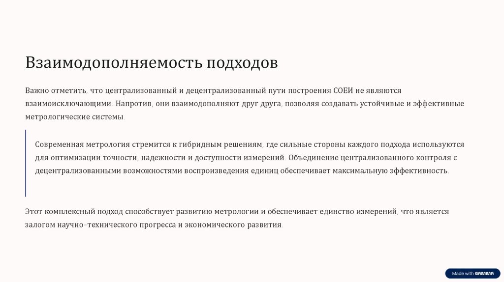 Этот комплексный подход способствует развитию метрологии и обеспечивает единство измерений, что является