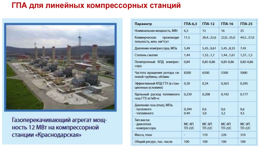 ГПА для линейных компрессорных станций7. ГПА для дожимных компрессорных станций