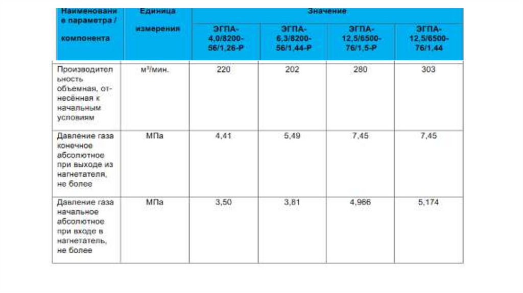 9. Технические характеристики ЭГПА (электроприводные газоперекачивающие агрегаты)