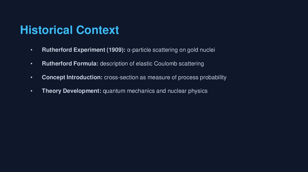 Historical ContextRutherford Experiment (1909): α-particle scattering on gold nuclei