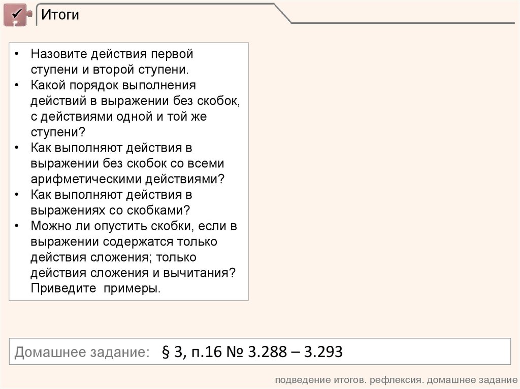 подведение итогов. рефлексия. домашнее задание