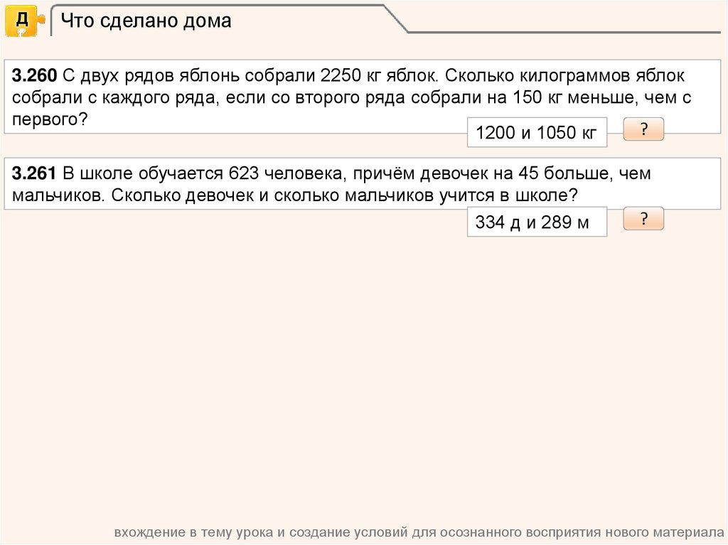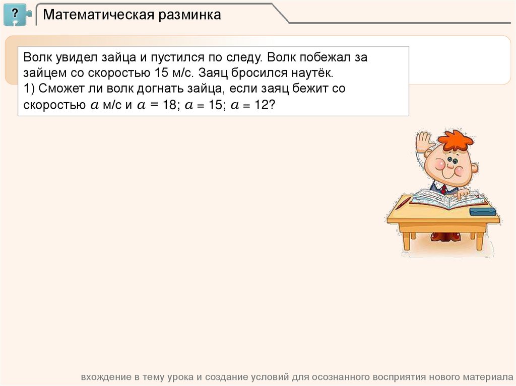 вхождение в тему урока и создание условий для осознанного восприятия нового материала