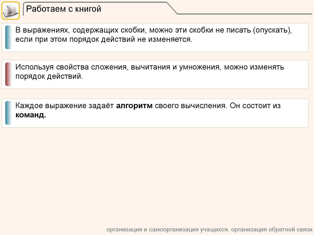 Работаем с книгойВ выражениях, содержащих скобки, можно эти скобки не писать (опускать),