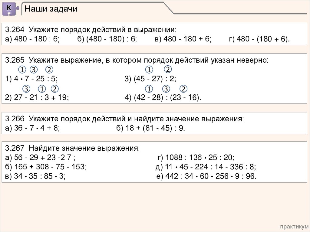 3.264 Укажите порядок действий в выражении: