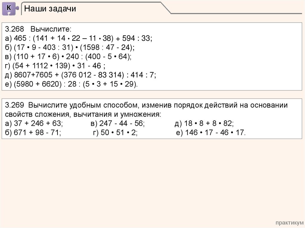 3.269 Вычислите удобным способом, изменив порядок действий на основании