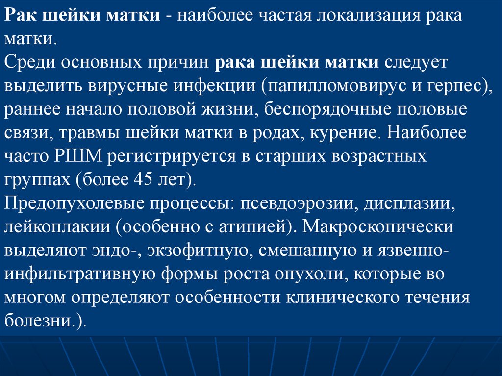связи, травмы шейки матки в родах, курение. Наиболее