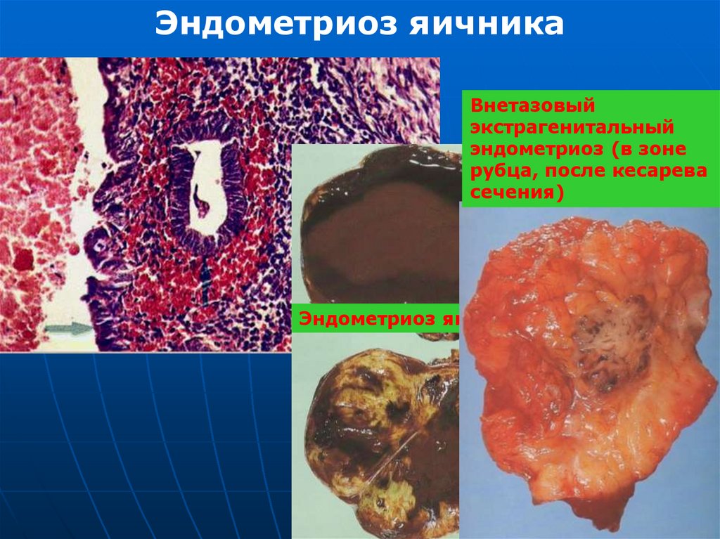 и фиброзные спайки на поверхности яичника.