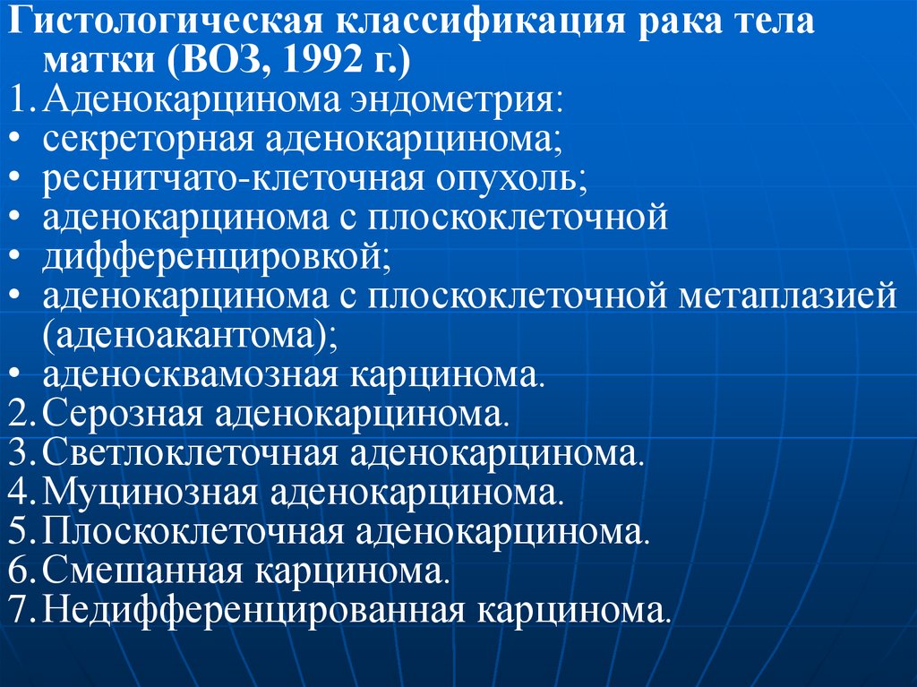 Гистологическая классификация рака шейкиматки