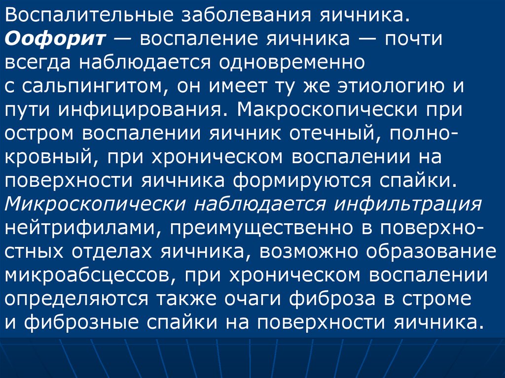 Воспалительные заболевания яичника.Оофорит — воспаление яичника — почти