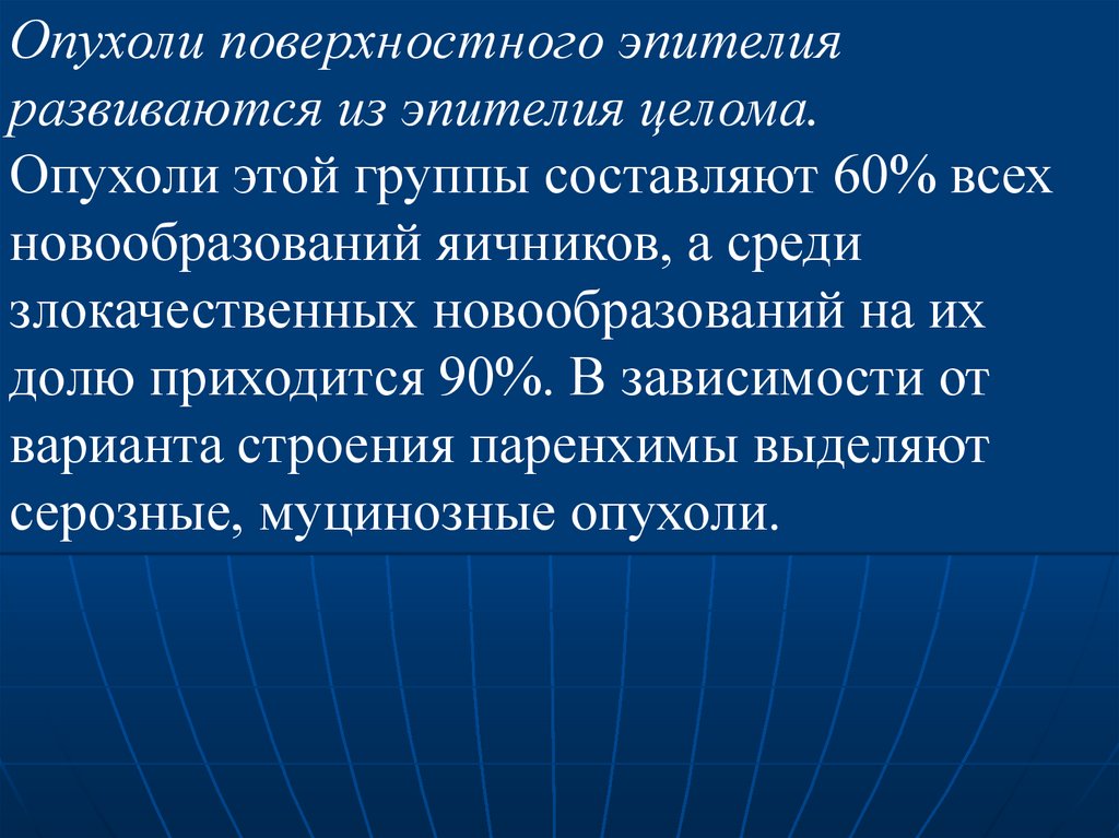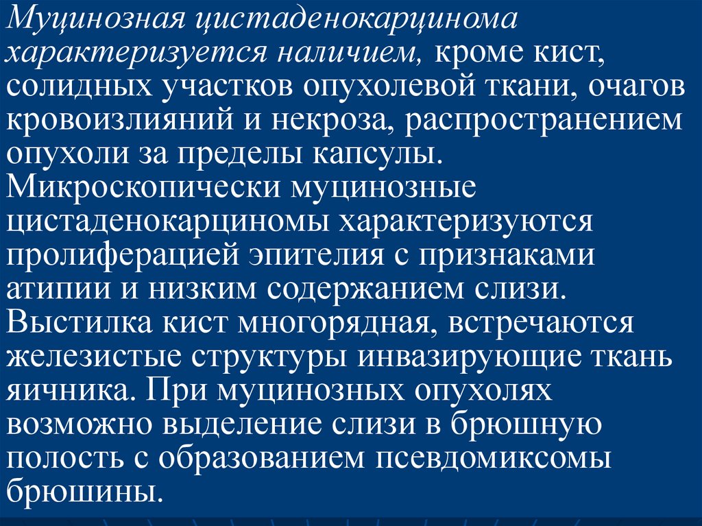 серозные, муцинозные опухоли.