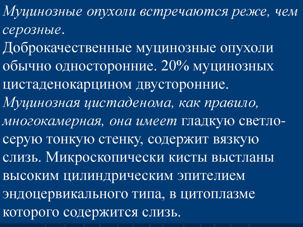 Муцинозные опухоли встречаются реже, чемсерозные.