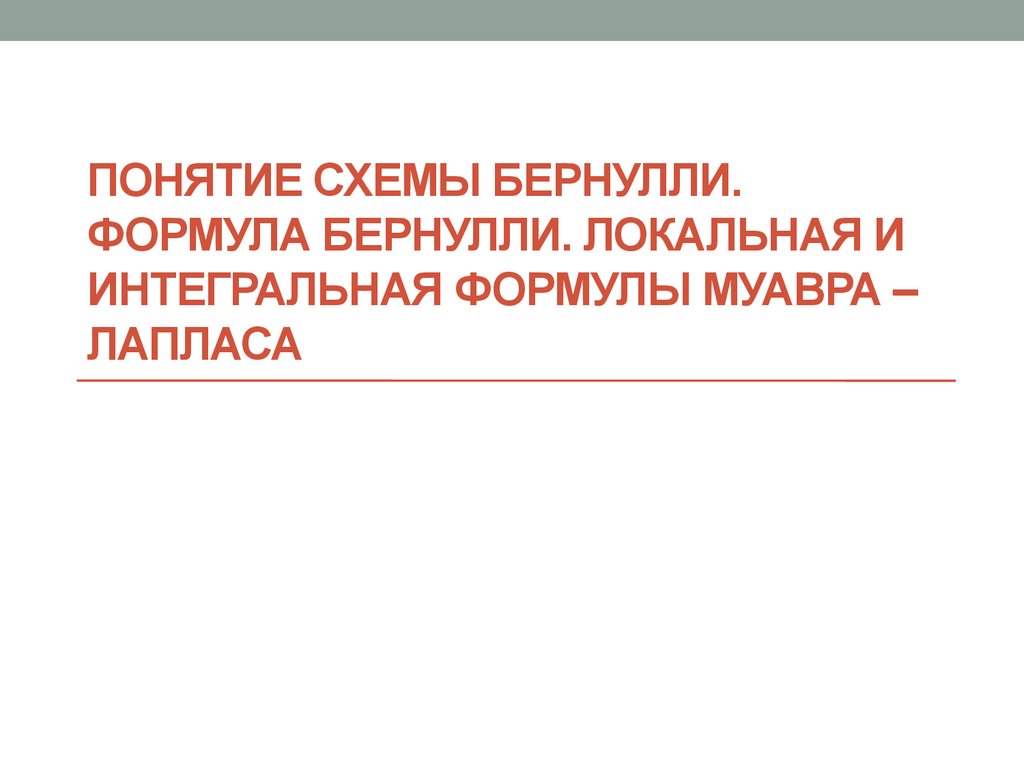 ПОНЯТИЕ СХЕМЫ БЕРНУЛЛИ.ФОРМУЛА БЕРНУЛЛИ. ЛОКАЛЬНАЯ И