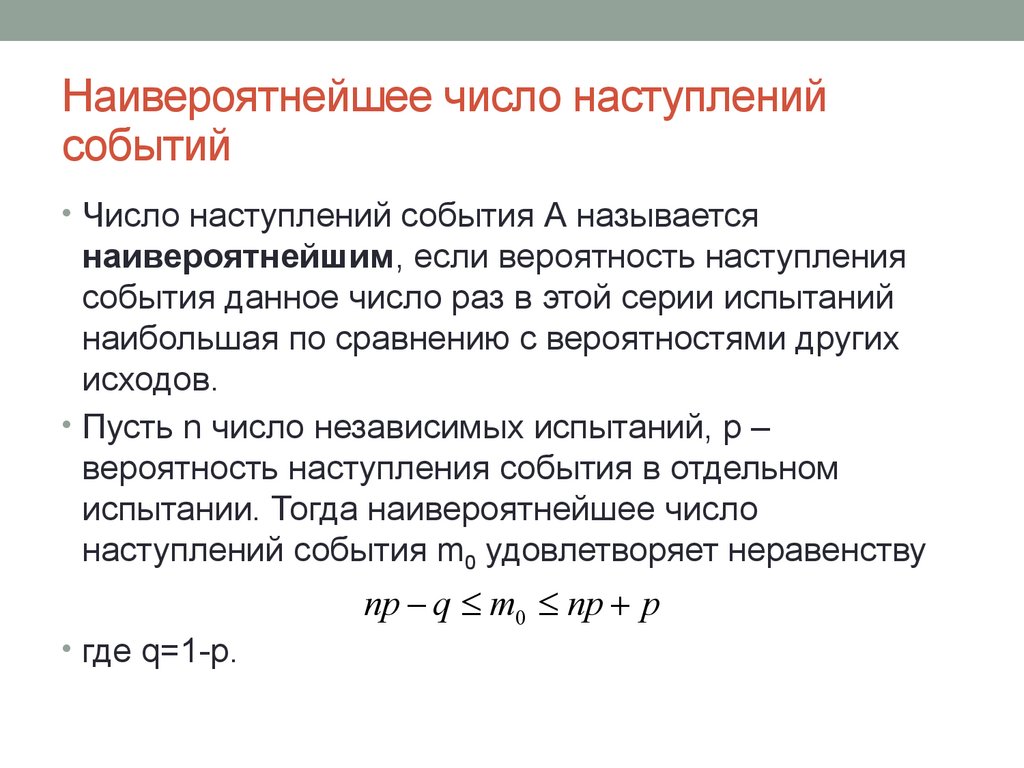 вероятностями p1, p2, …,pk, то вероятность того, что в