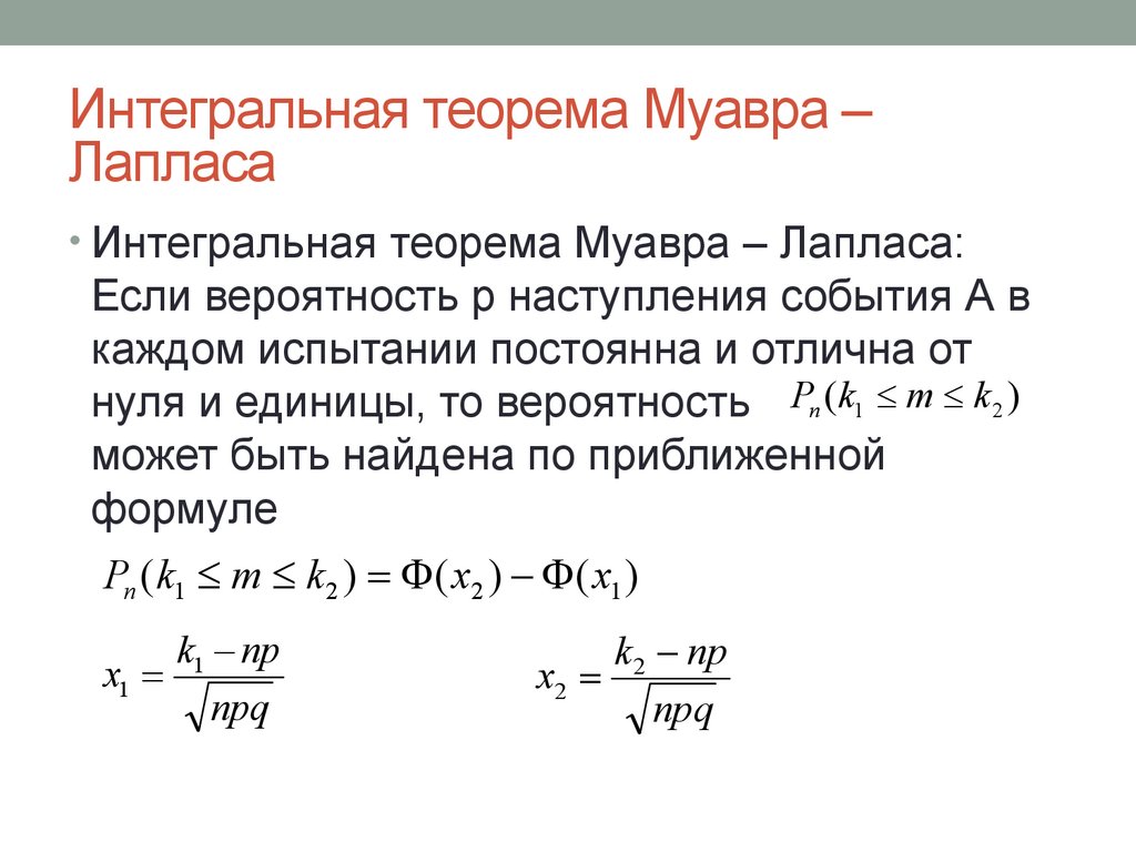 ИНТЕГРАЛЬНАЯ ФОРМУЛЫ МУАВРА –
