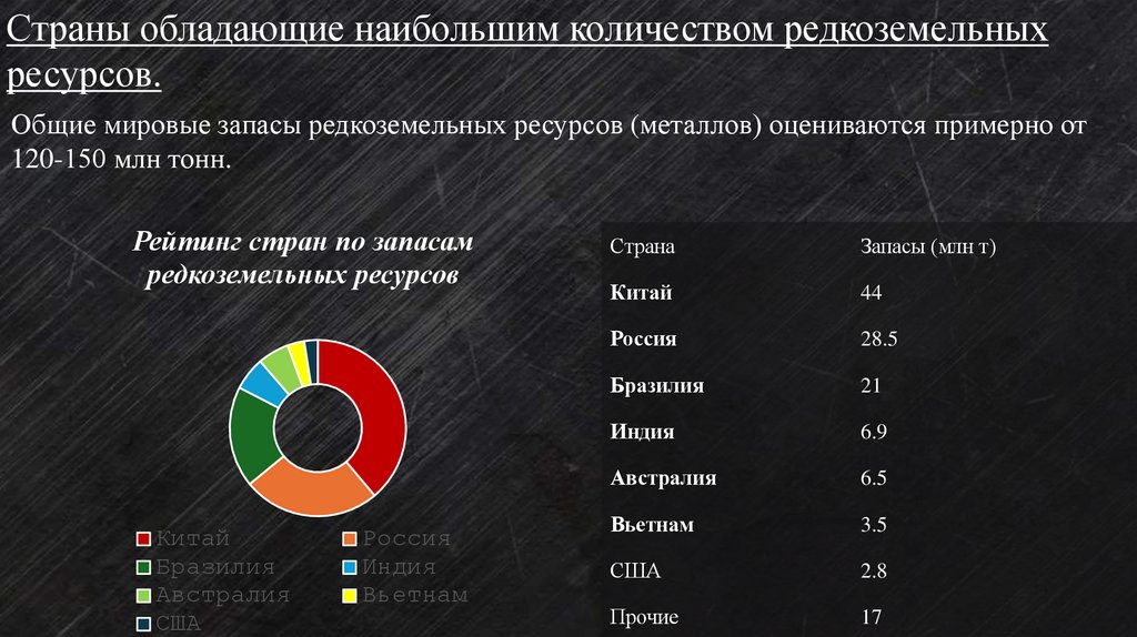 Страны обладающие наибольшим количеством редкоземельныхресурсов.