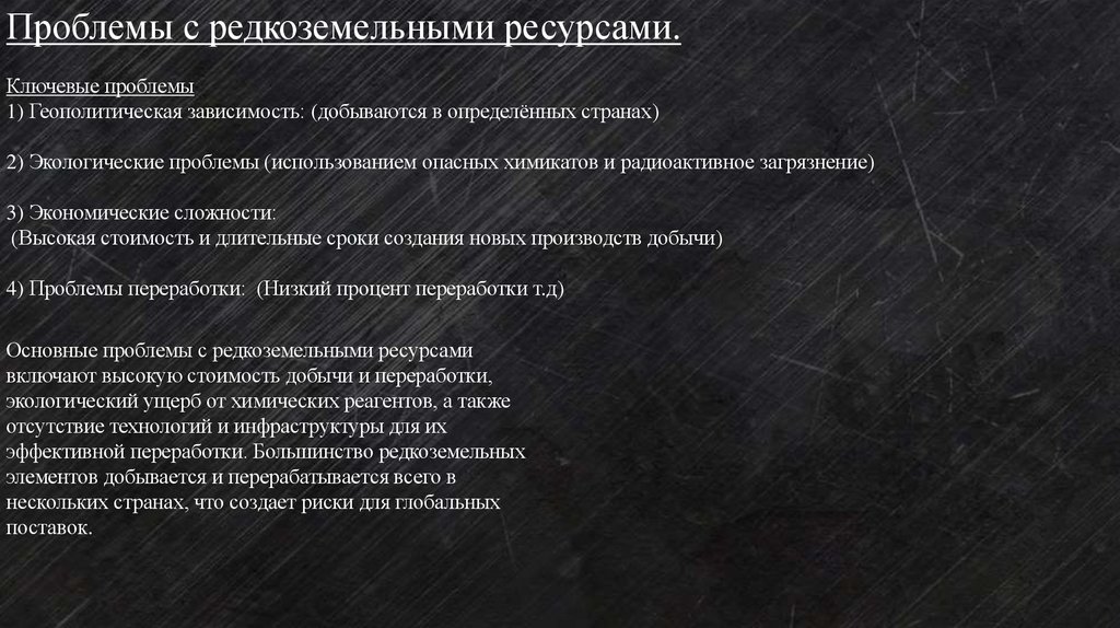 Проблемы с редкоземельными ресурсами.Ключевые проблемы