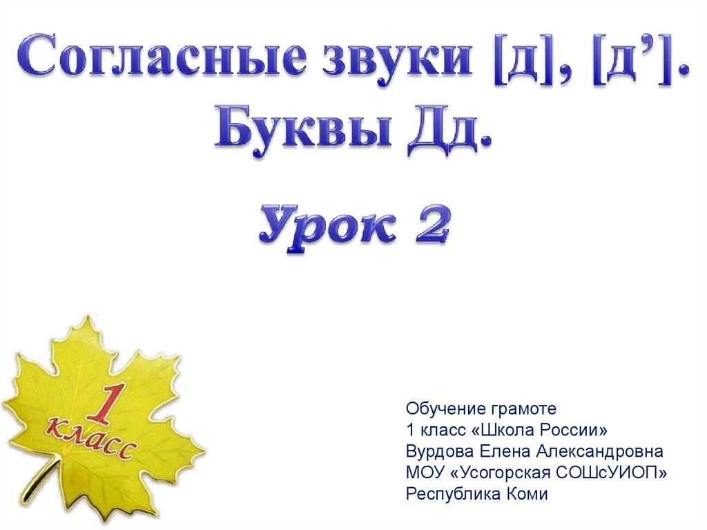 Презентация Обучение грамоте по теме _Согласные звуки д, дь. Буквы Дд. Урок 2_ (1 класс)