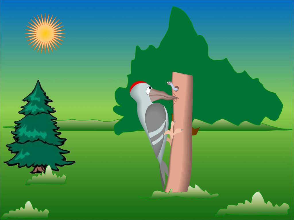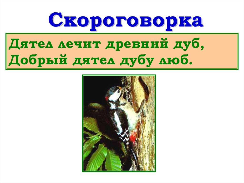 Дятел лечит древний дуб,Добрый дятел дубу люб.