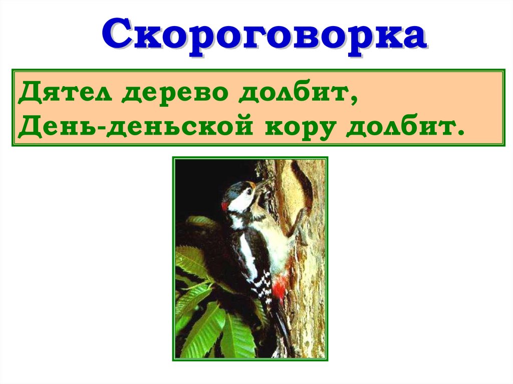 Дятел дерево долбит,День-деньской кору долбит.