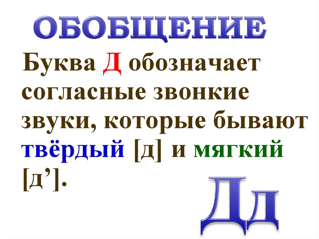 Буква Д обозначаетсогласные звонкие