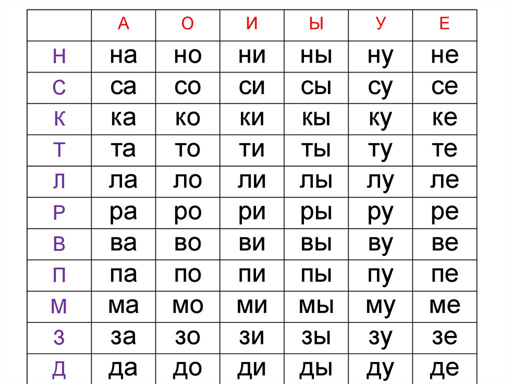 т та то ту ты те ти