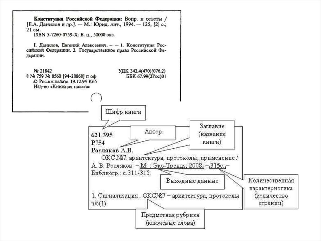 • термины индексирования (классификационные индексы, предметные рубрики и