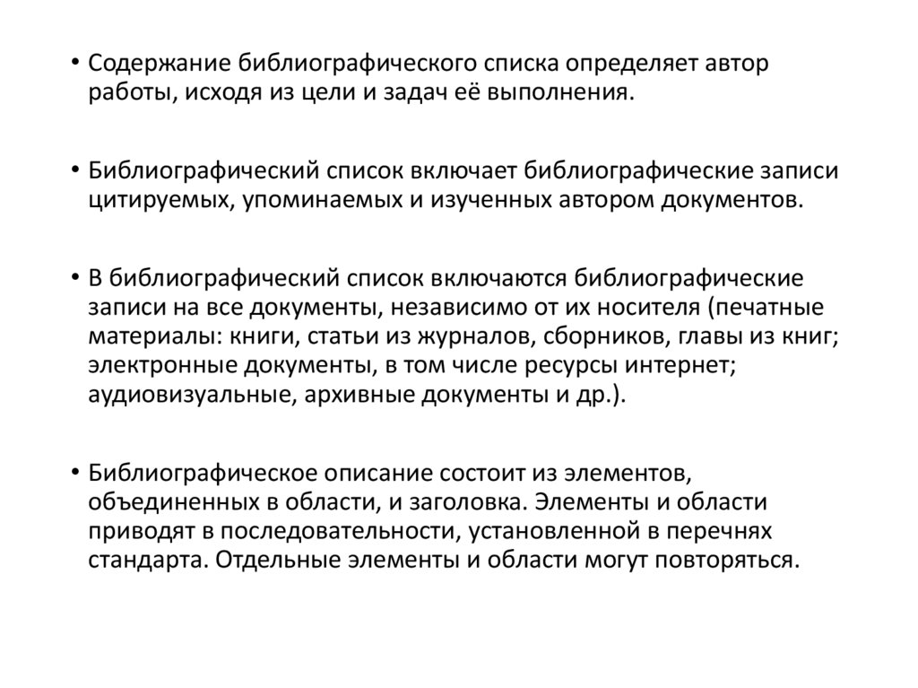 • Содержание библиографического списка определяет авторработы, исходя из цели и задач её выполнения.