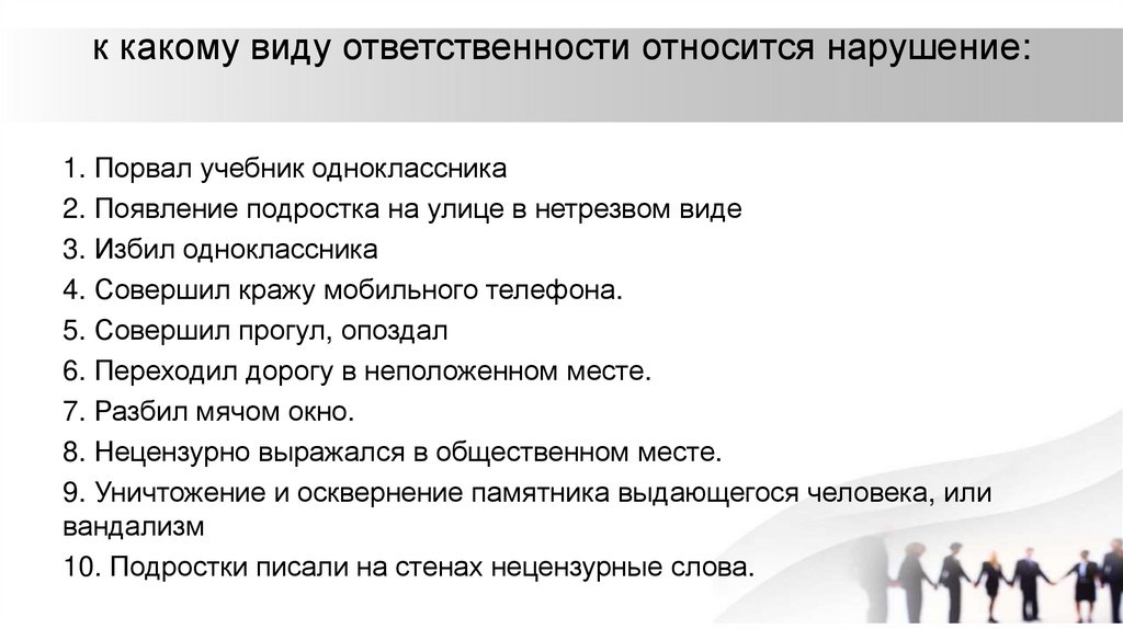 к какому виду ответственности относится нарушение:1. Порвал учебник одноклассника