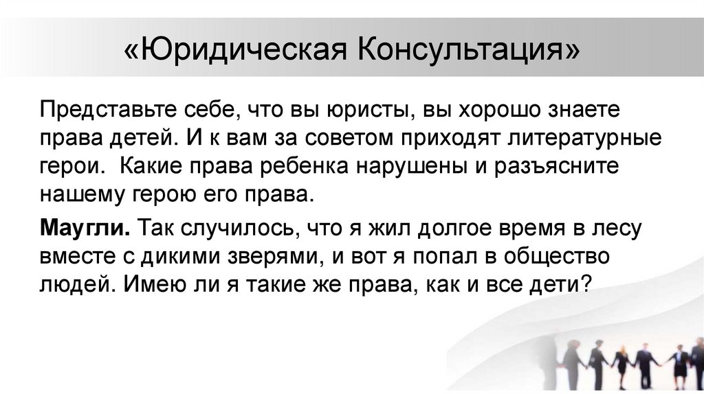«Юридическая Консультация»Представьте себе, что вы юристы, вы хорошо знаете