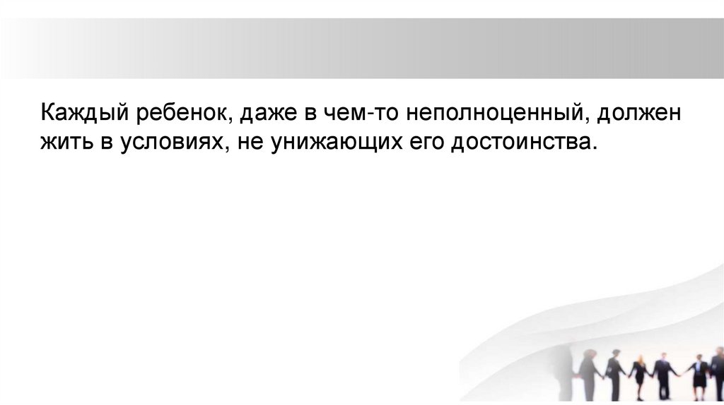 Каждый ребенок, даже в чем-то неполноценный, долженжить в условиях, не унижающих его достоинства.
