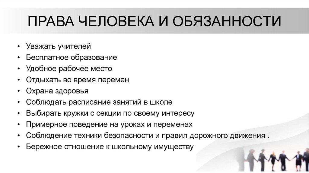 ПРАВА ЧЕЛОВЕКА И ОБЯЗАННОСТИУважать учителей