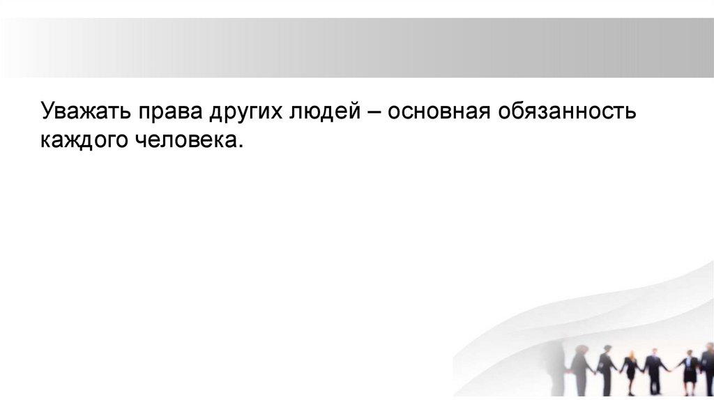 Уважать права других людей – основная обязанностькаждого человека.
