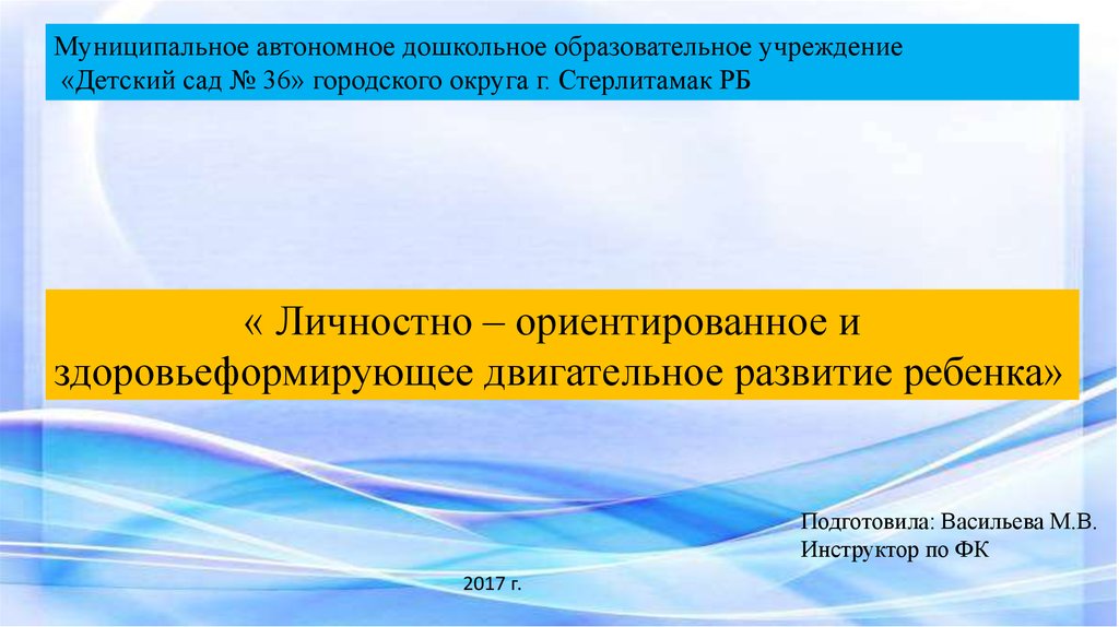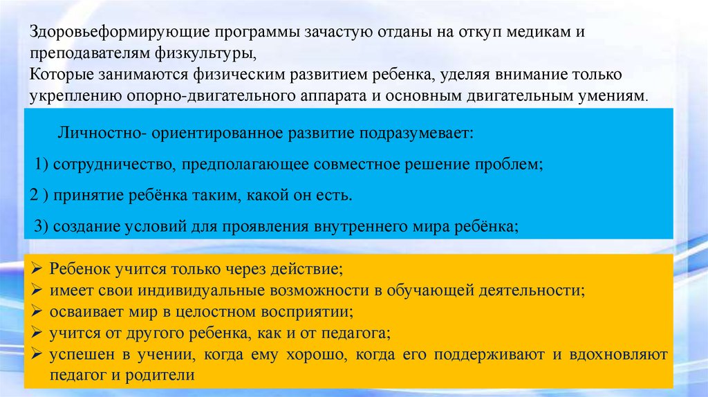 Личностно – ориентированное и здоровьеформирующее двигательное развитие ребенка