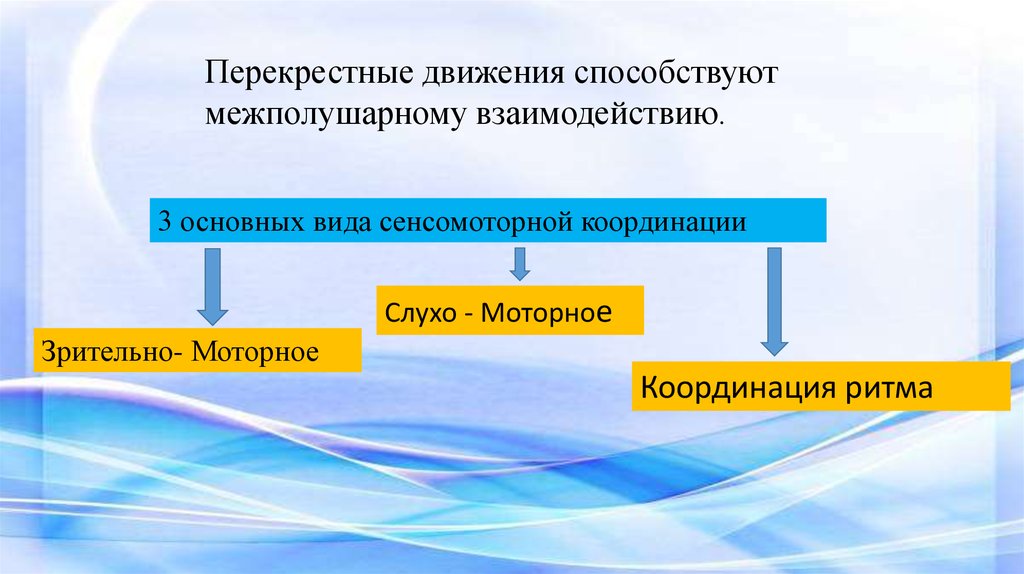 Перекрестные движения способствуютмежполушарному взаимодействию.