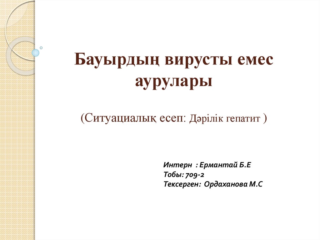 1. Бауырдың вирусты емес аурулары (Ситуациалық есеп: Дәрілік гепатит )